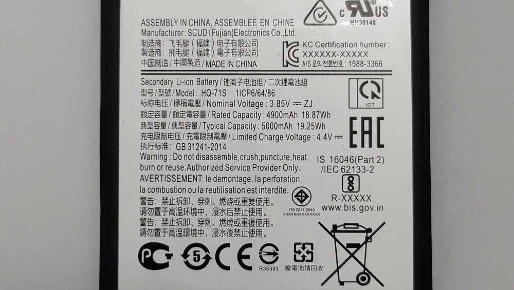 Battery Capacity : 4900mAh/18.87Wh