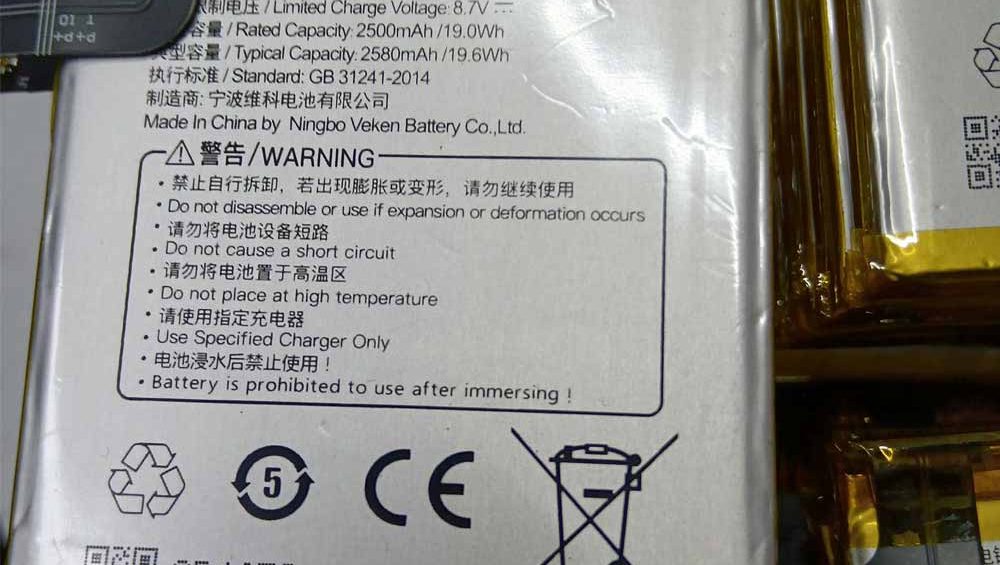 Battery Capacity : 2500mAh/9.63Wh