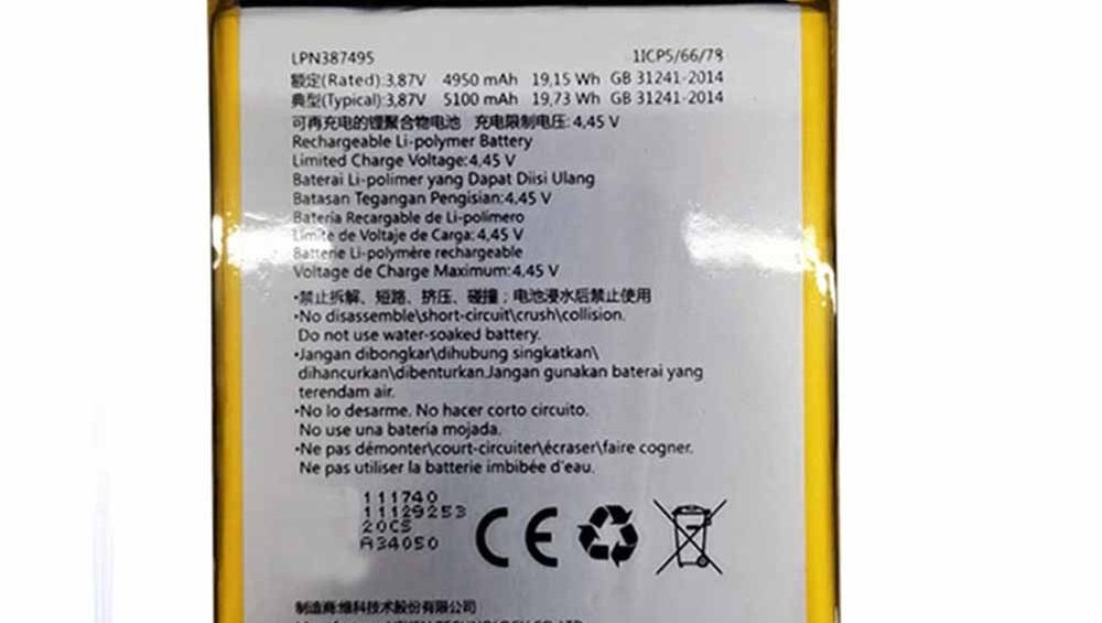 Battery Capacity : 4750mAh 18.1WH